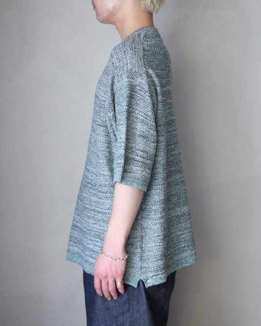 ULTERIOR/L/C TUCK STITCH KNIT TEE "MELANGE GREEN"