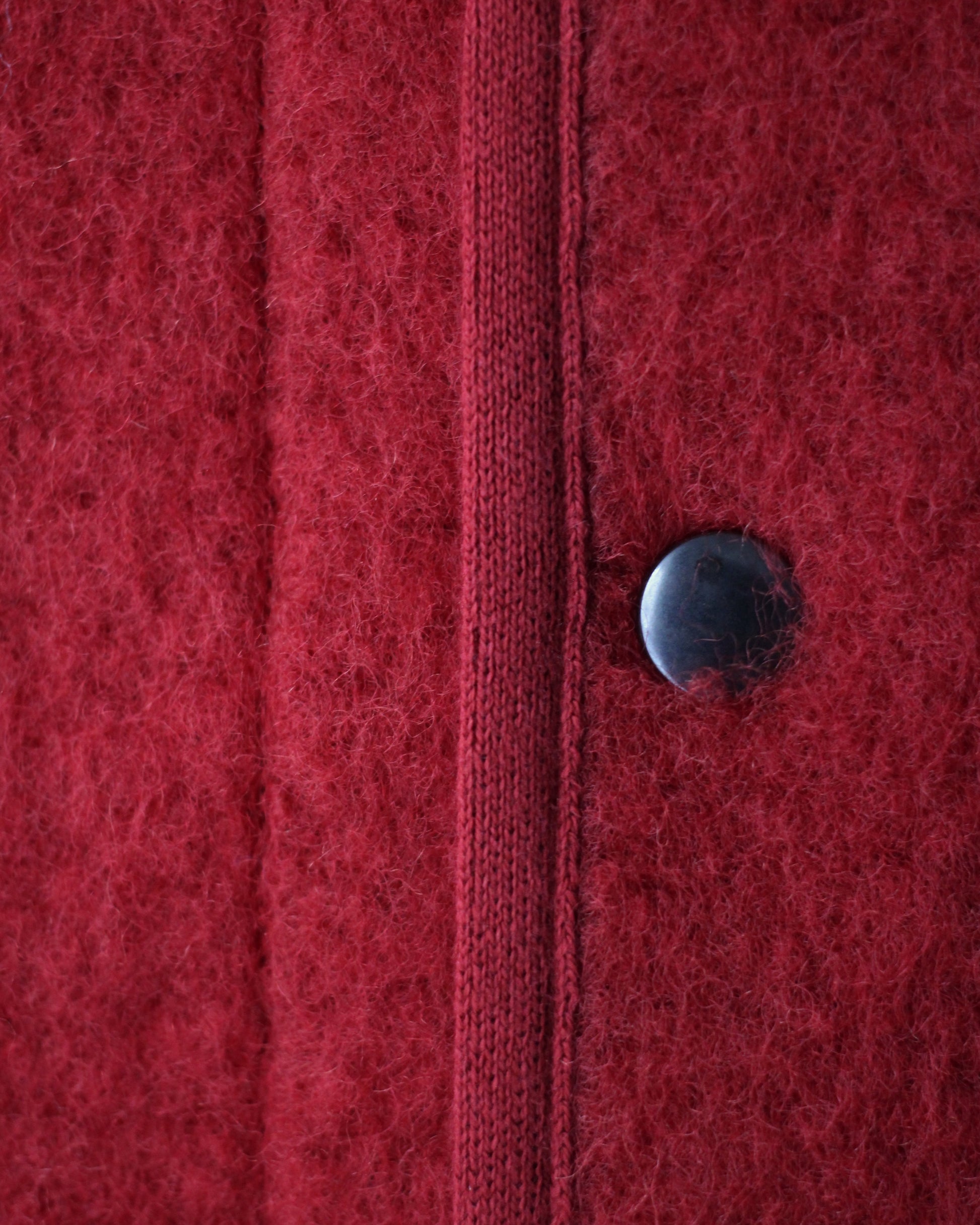 起毛加工が施されており、アイテムの軽さがありながら保温性が非常に高く、真冬でもアウター感覚で着用いただけます。毛足のある絶妙な生地がエレガントな印象。
