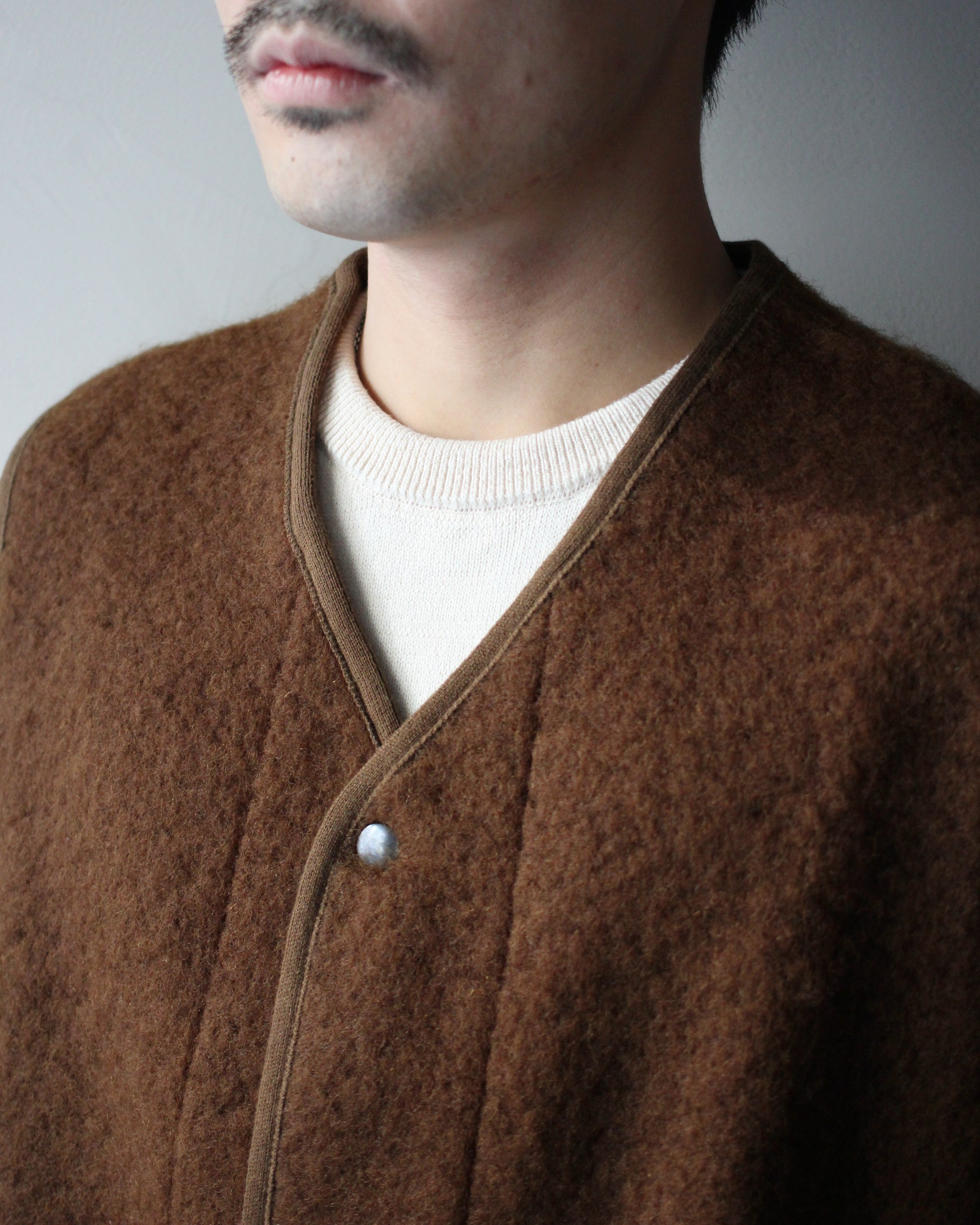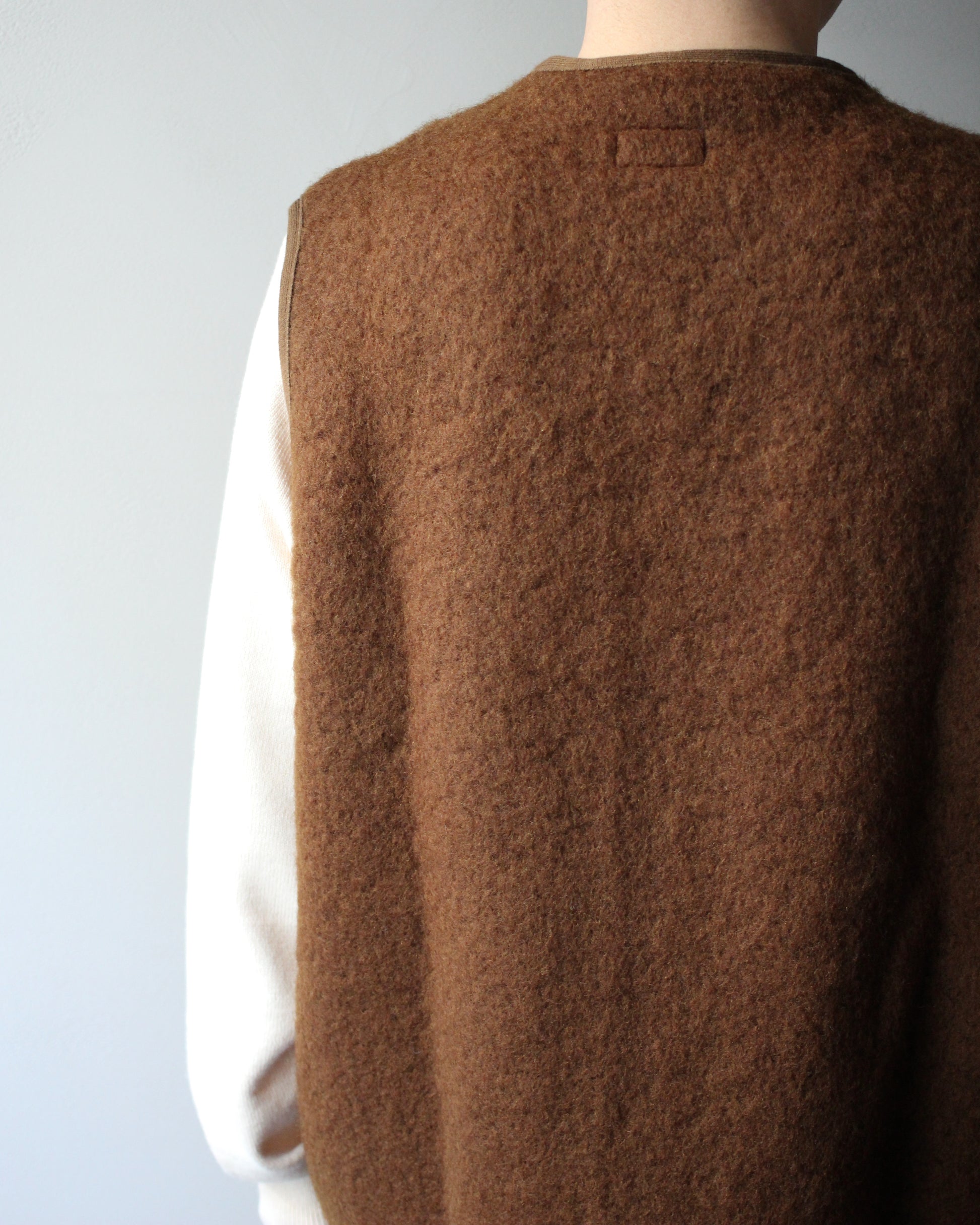 CONTOUR Vは、ウールとモヘアを細かく織りあげた生地のベスト。