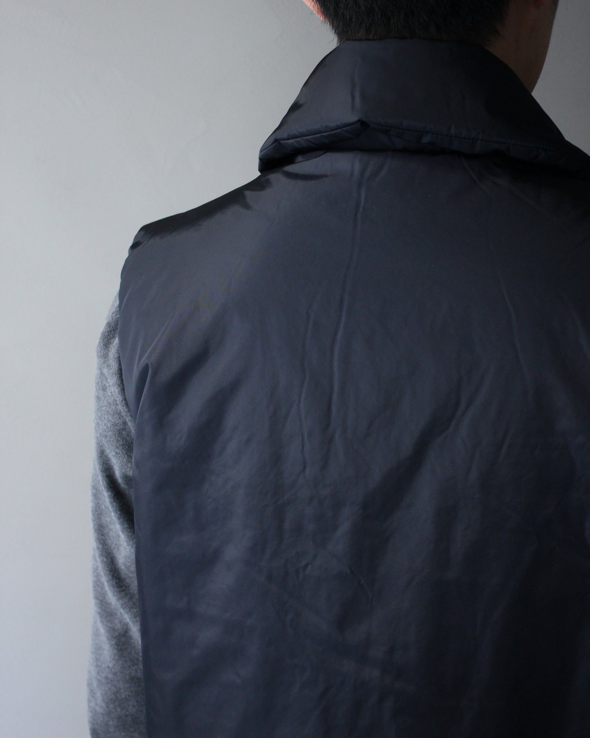 スタンドカラーとして完全防寒。襟元を広げてフーディとレイヤーしたり、マフラーなどの小物類と合わせた様々なスタイルを気温に応じてお楽しみいただけます。