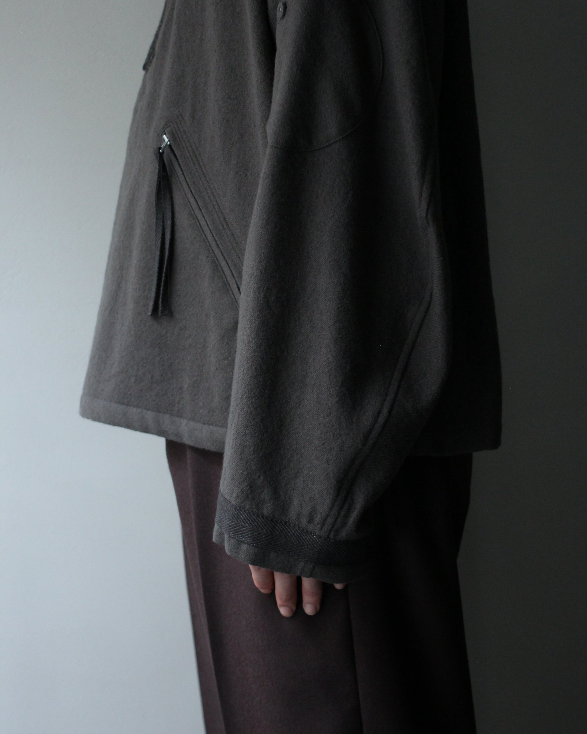 ウールに縮絨加工を施した生地のプルオーバージャケット。