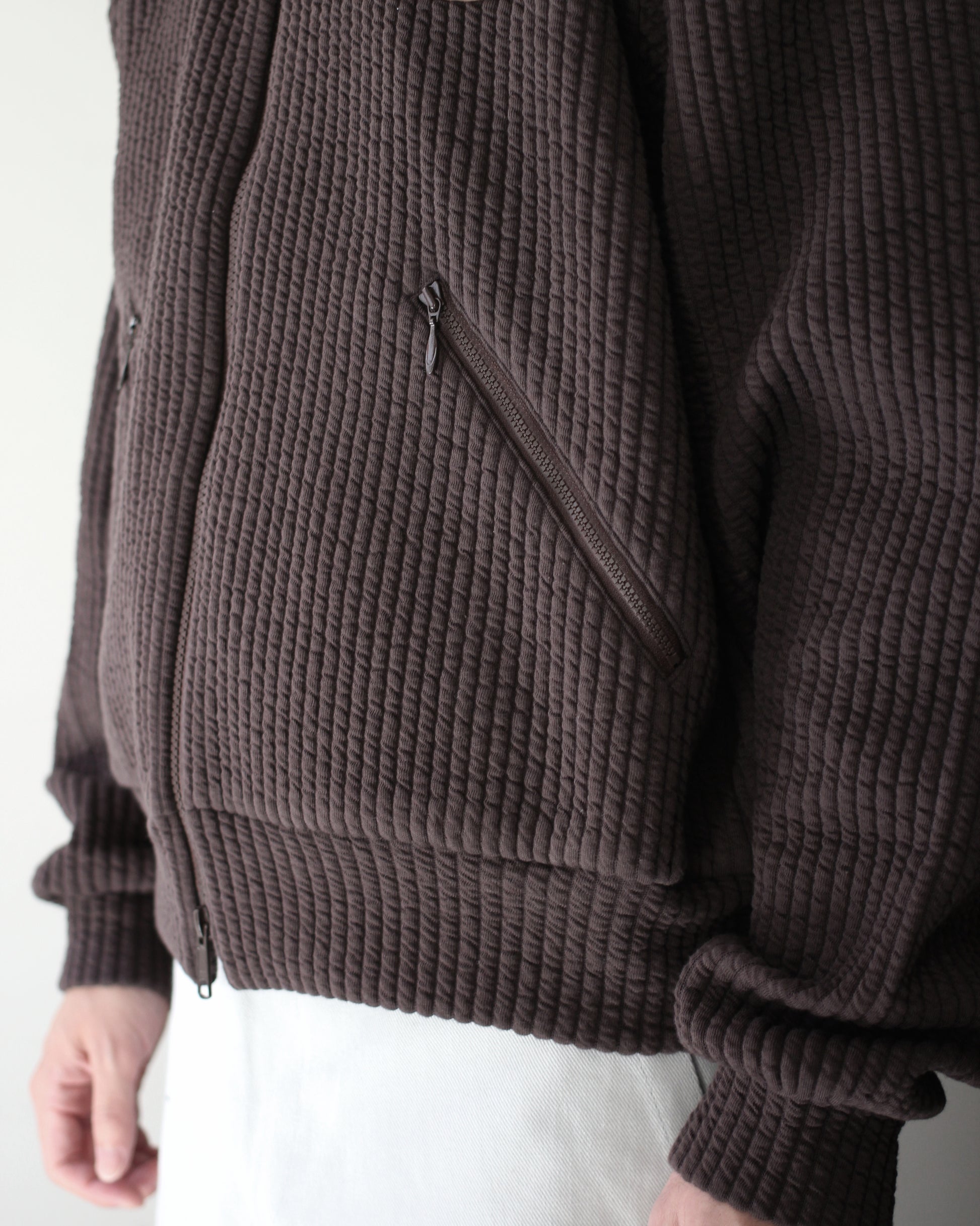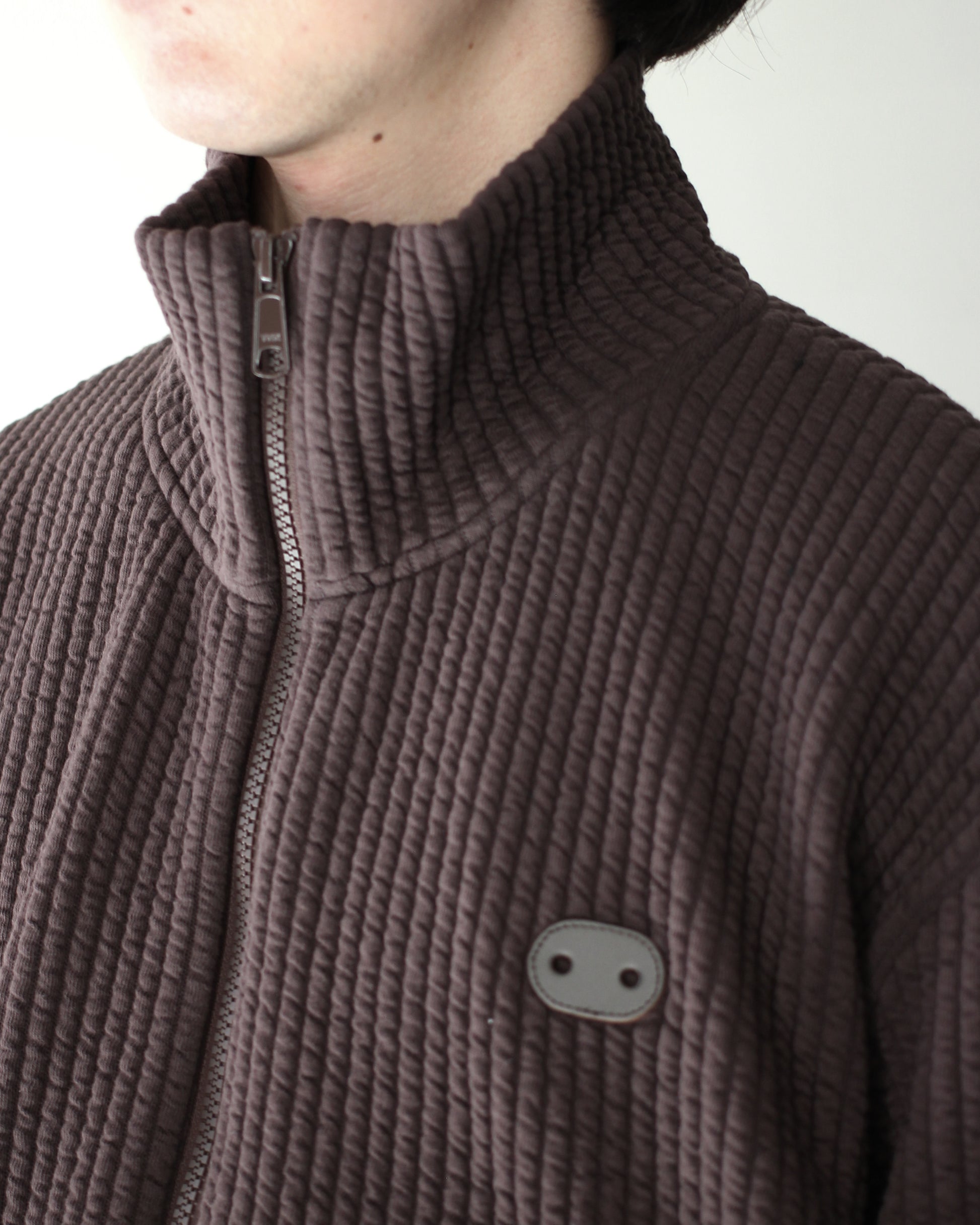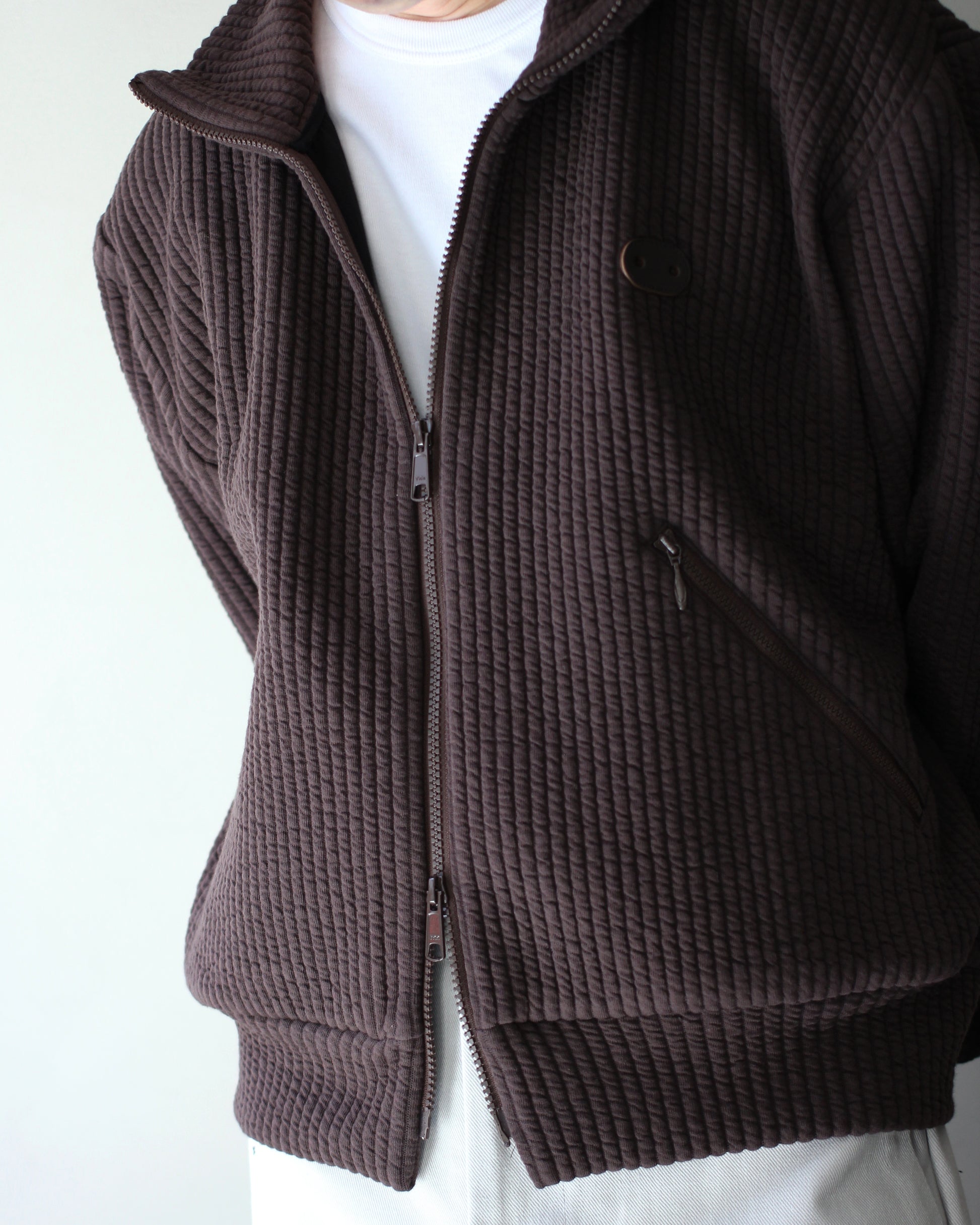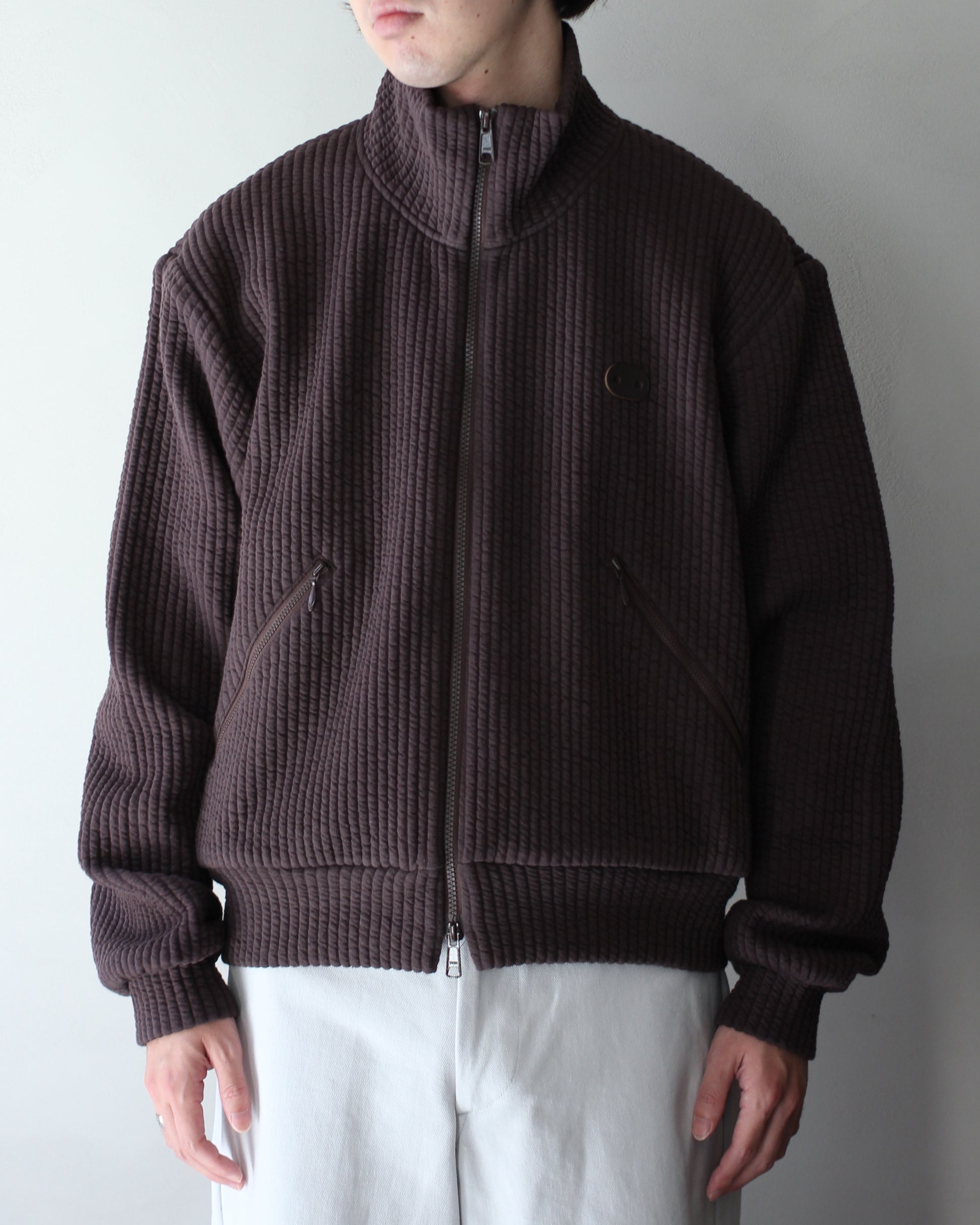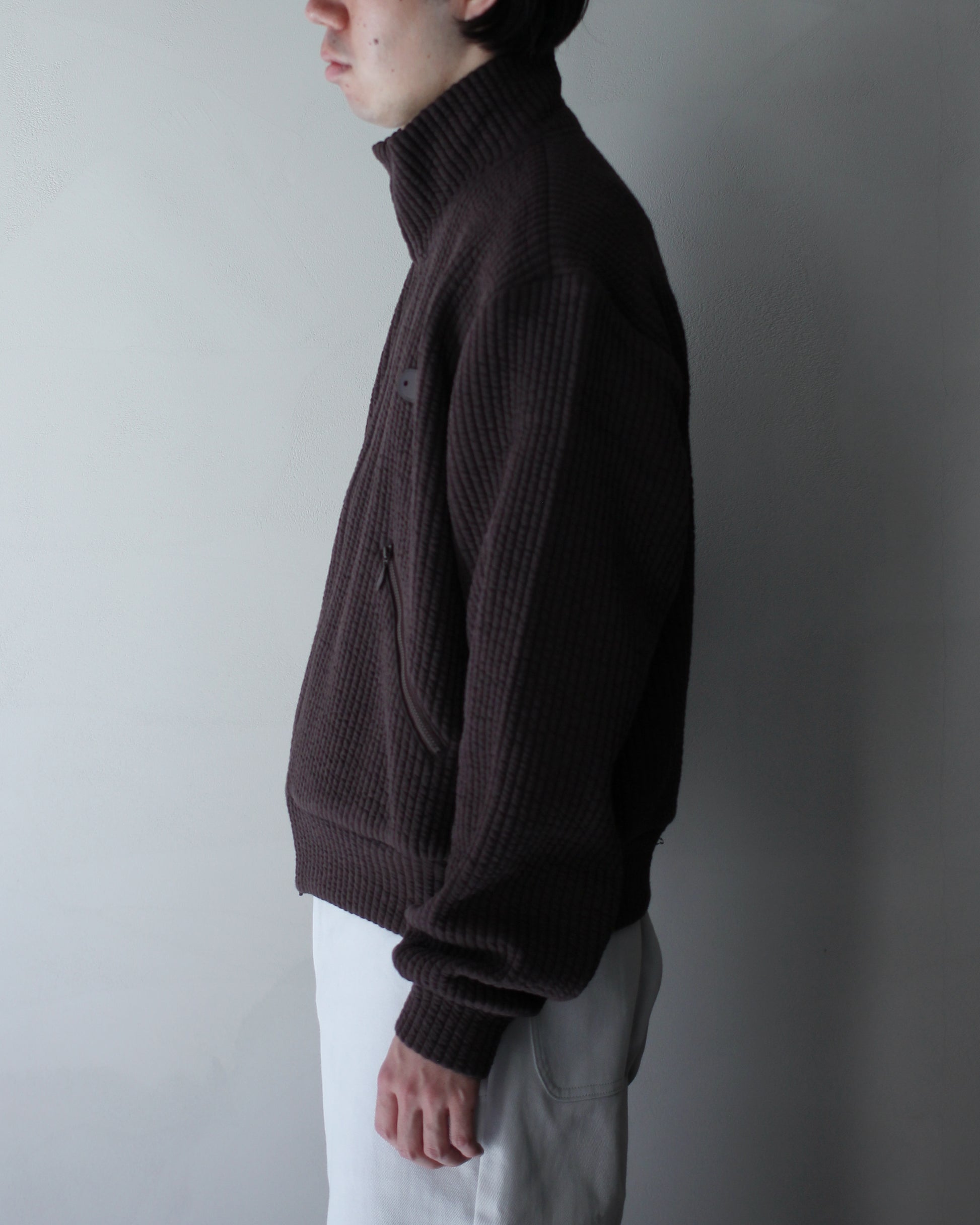 MATSUFUJI/STRIPE JACQUARD STAND COLLAR JACKET "BROWN"