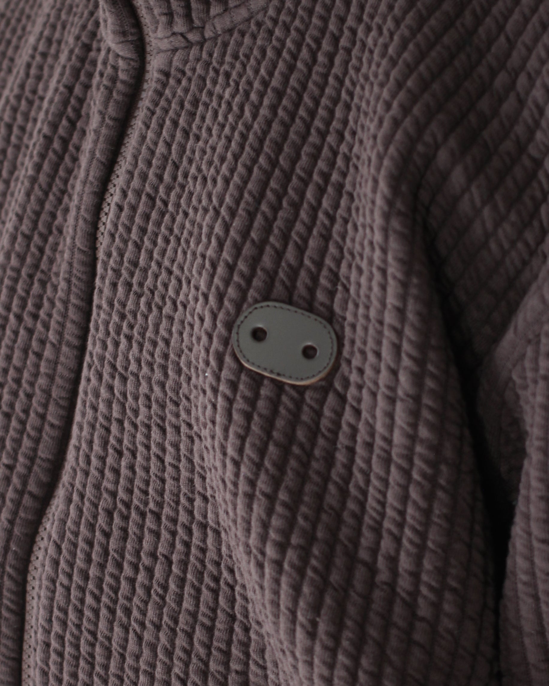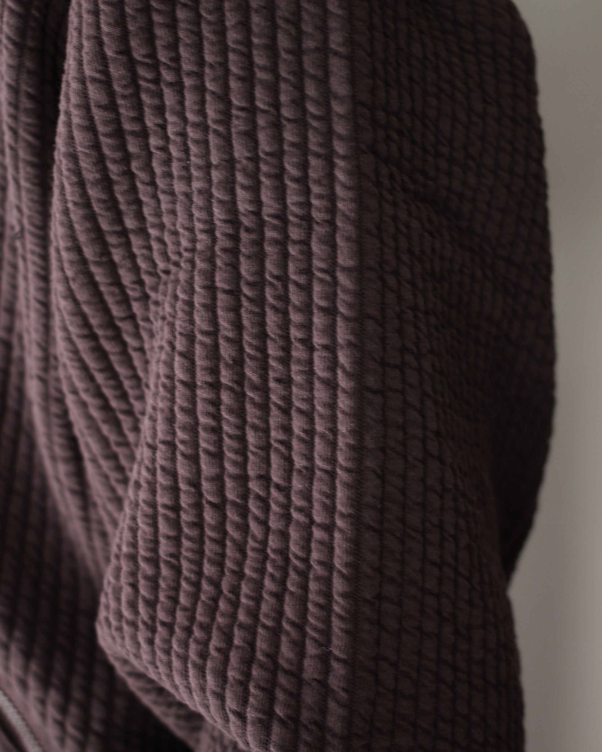ストライプ状に編んだジャガード生地が特徴的なオーバーサイズジャケット。