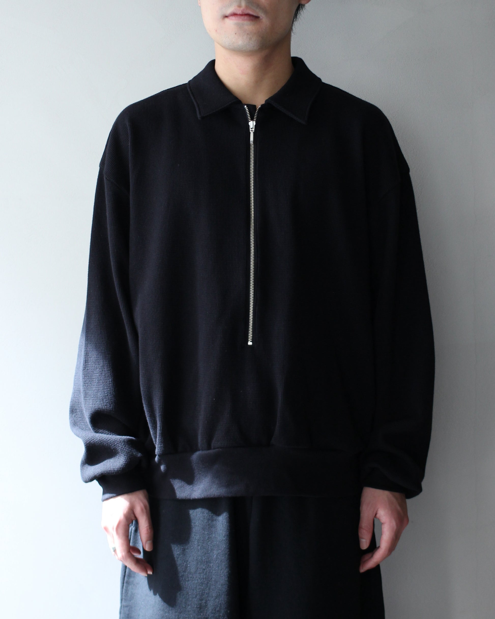 REVERBERATEのシグネチャーモデルであるサーマル生地を用いたハーフジップの