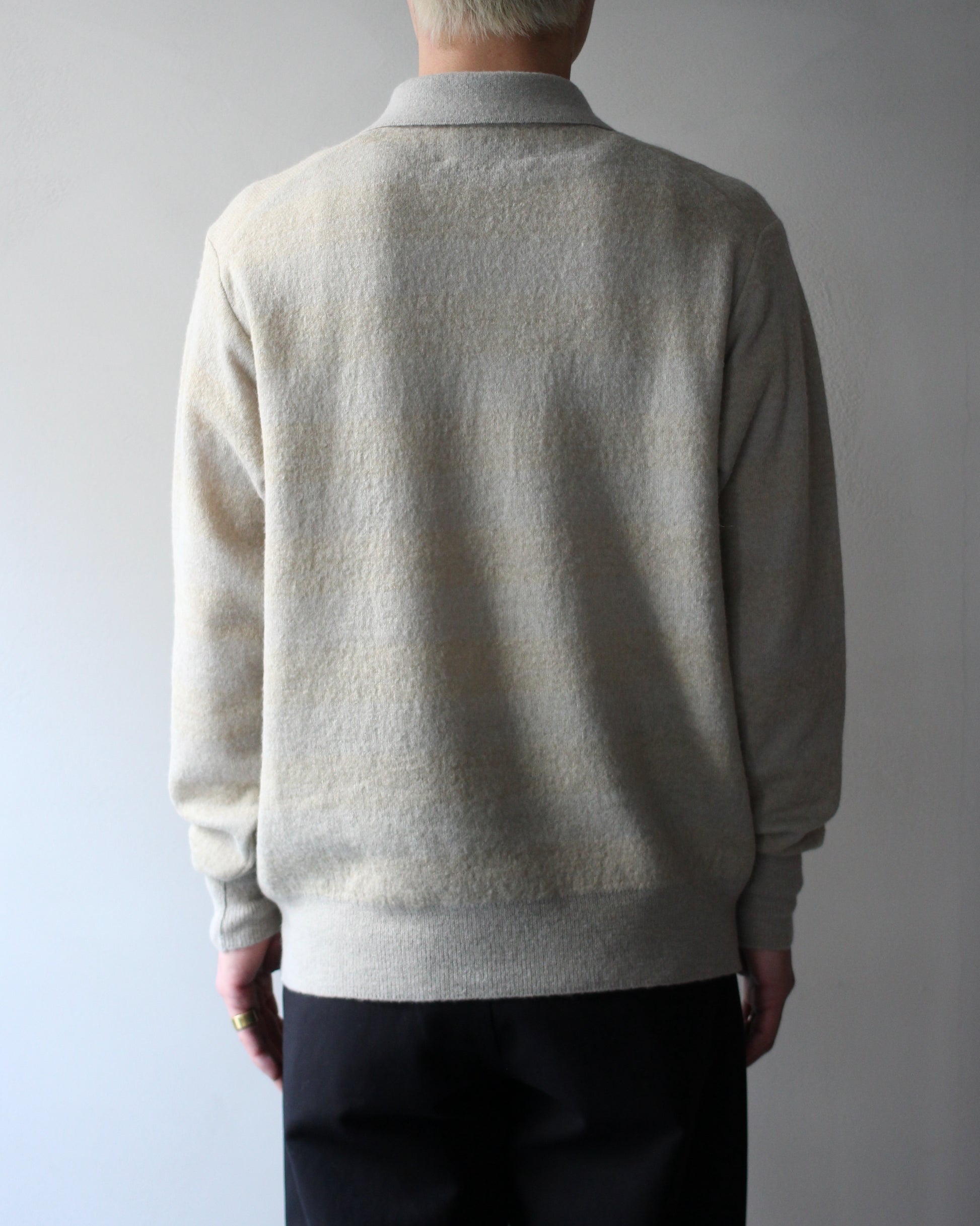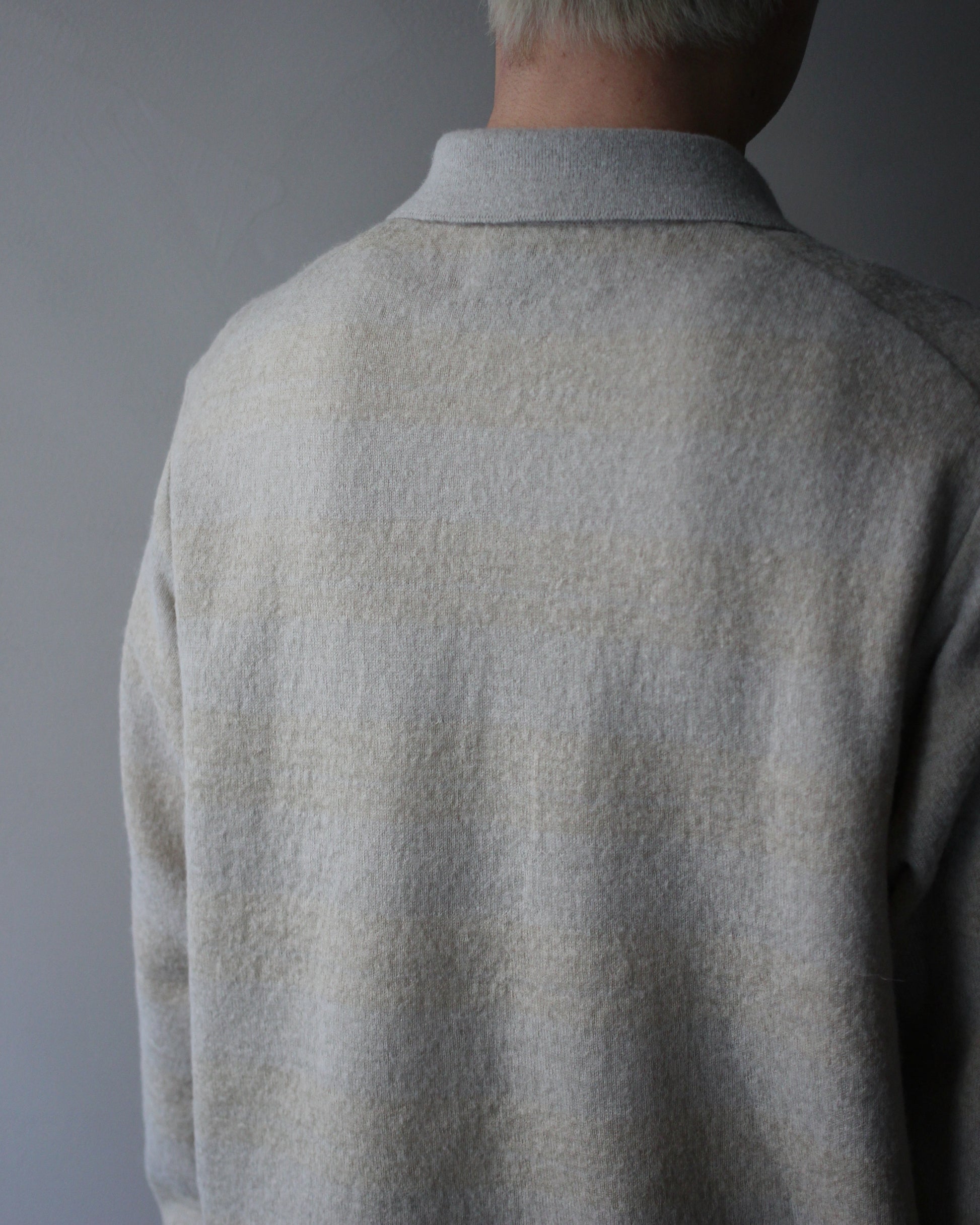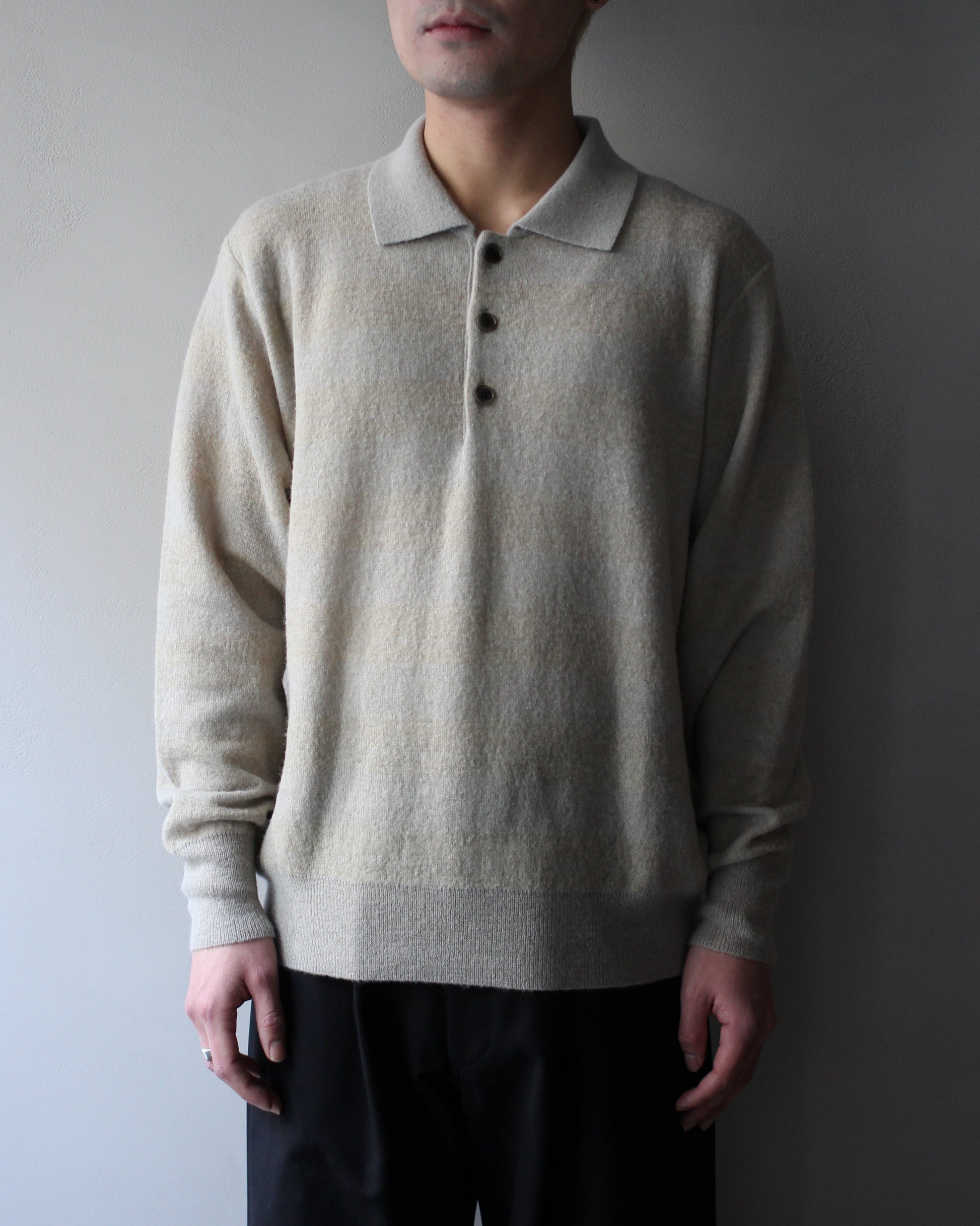 ssstein/W/AL/NY KNIT STRIPE POLO LS " BEIGE GREIGE"