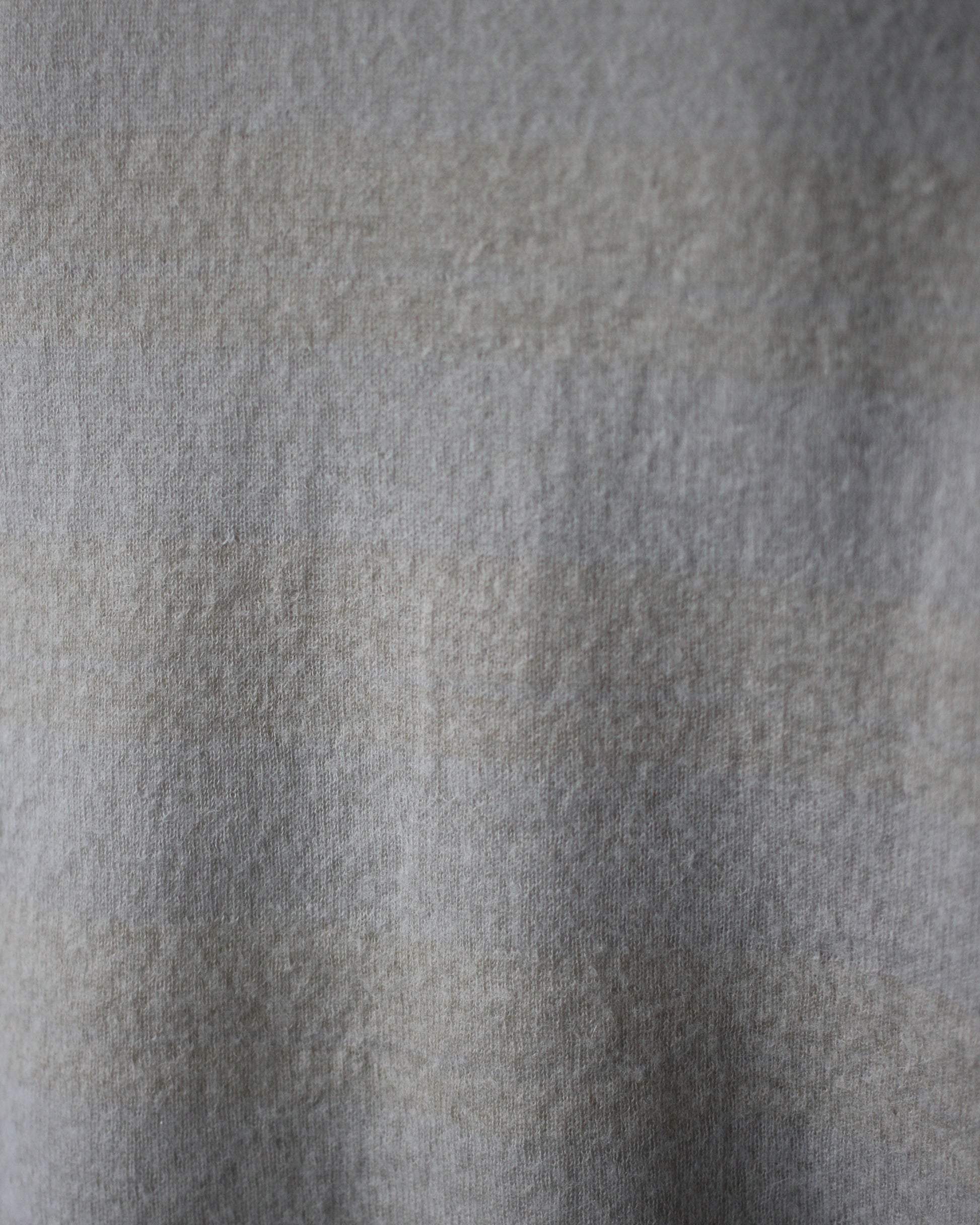 表側はボーダーで、裏側は無地の袋状に編むことで、表側のボーダーの柄の出方を