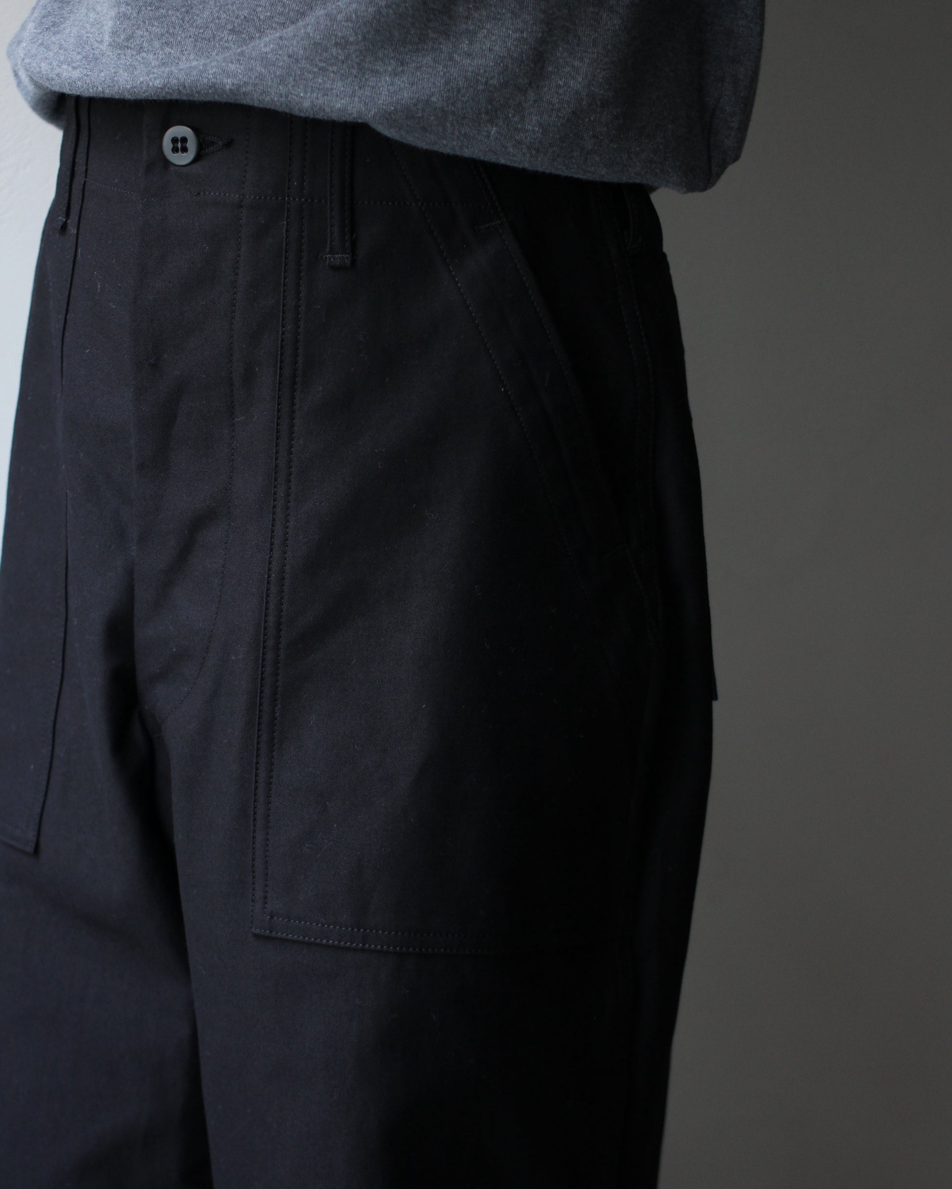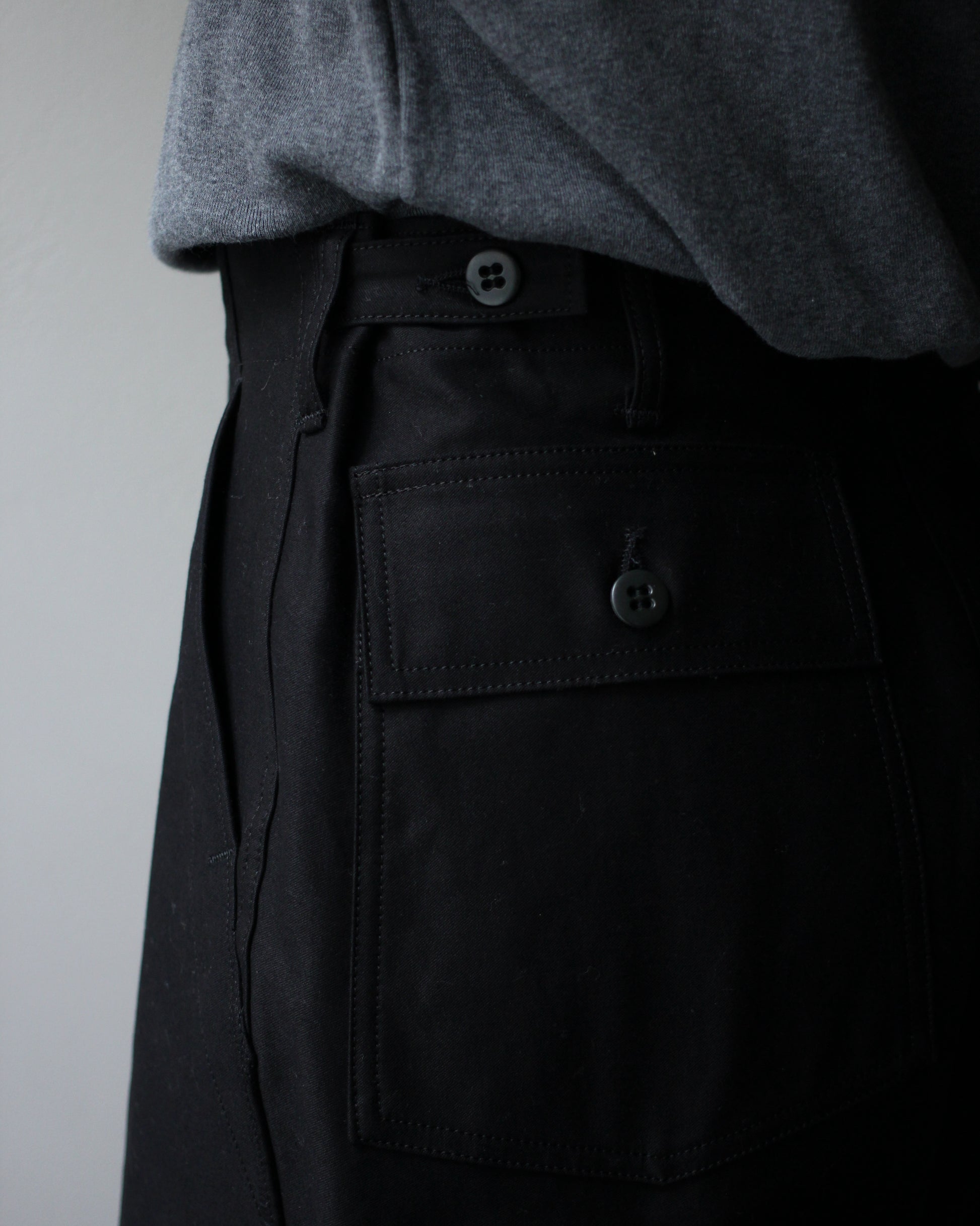 ミリタリーな印象のあるベイカーパンツに対するTUKIの解釈は、ヴィンテージへのリスペクトの上で、パターン、生地で魅せる独自性に長けたものがあります。