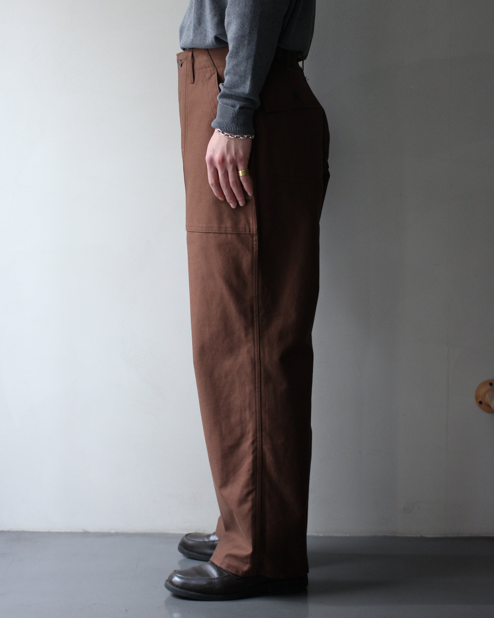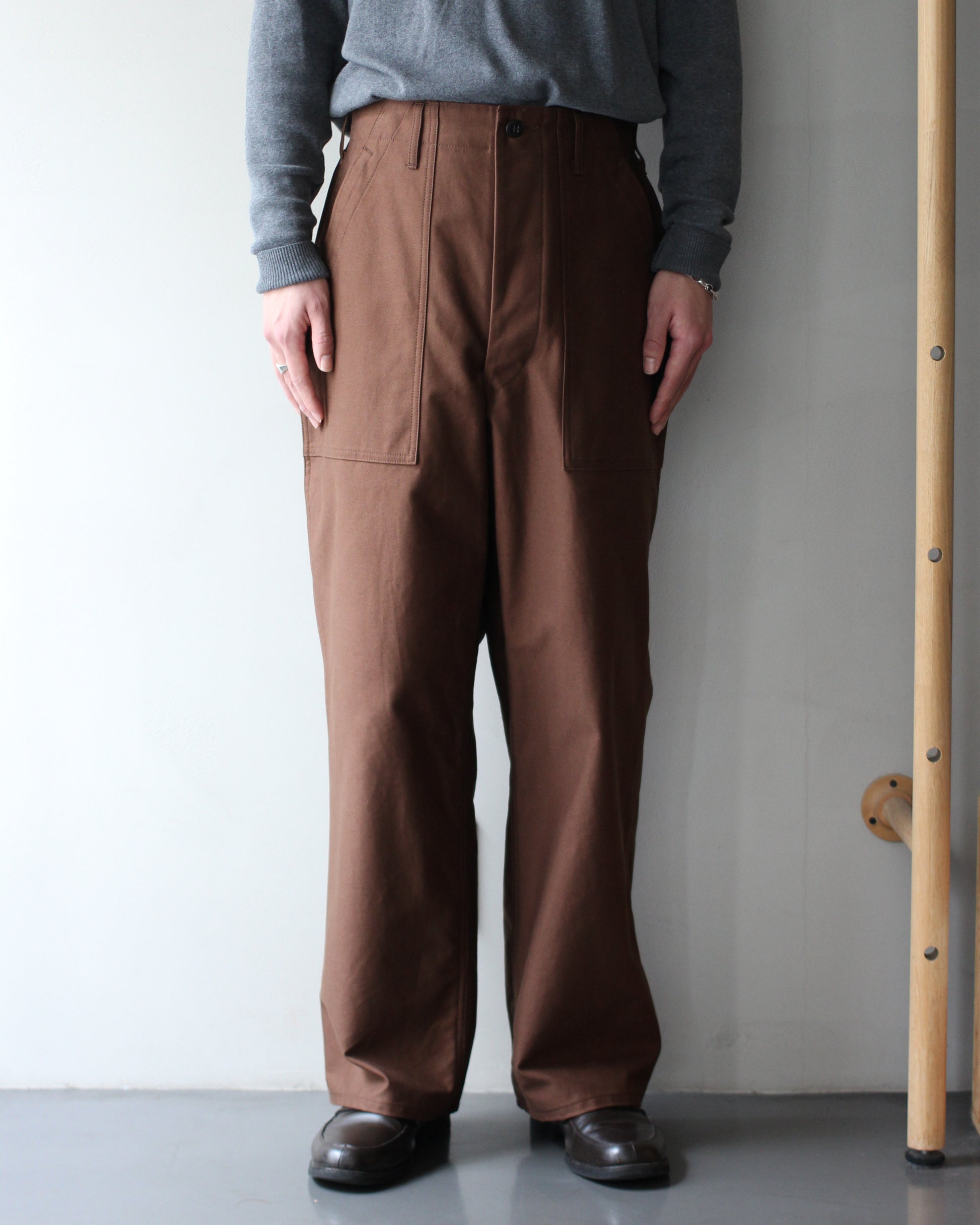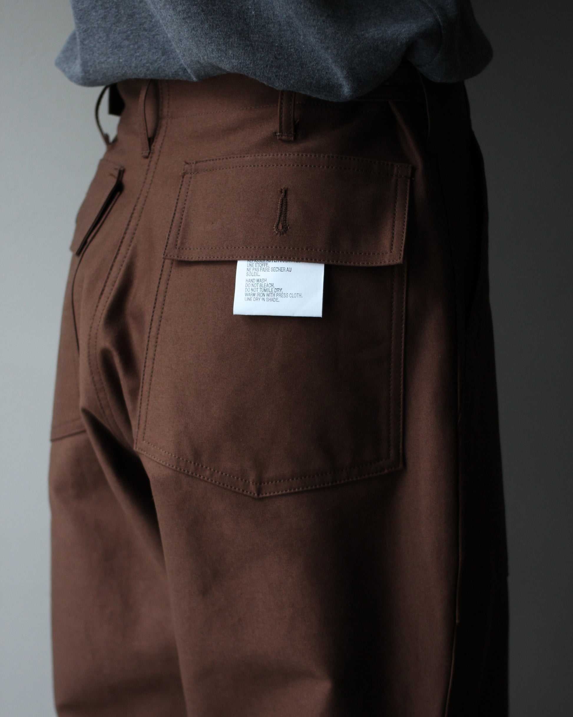 ミリタリーな印象のあるベイカーパンツに対するTUKIの解釈は、ヴィンテージへのリスペクトの上で、パターン、生地で魅せる独自性に長けたものがあります。