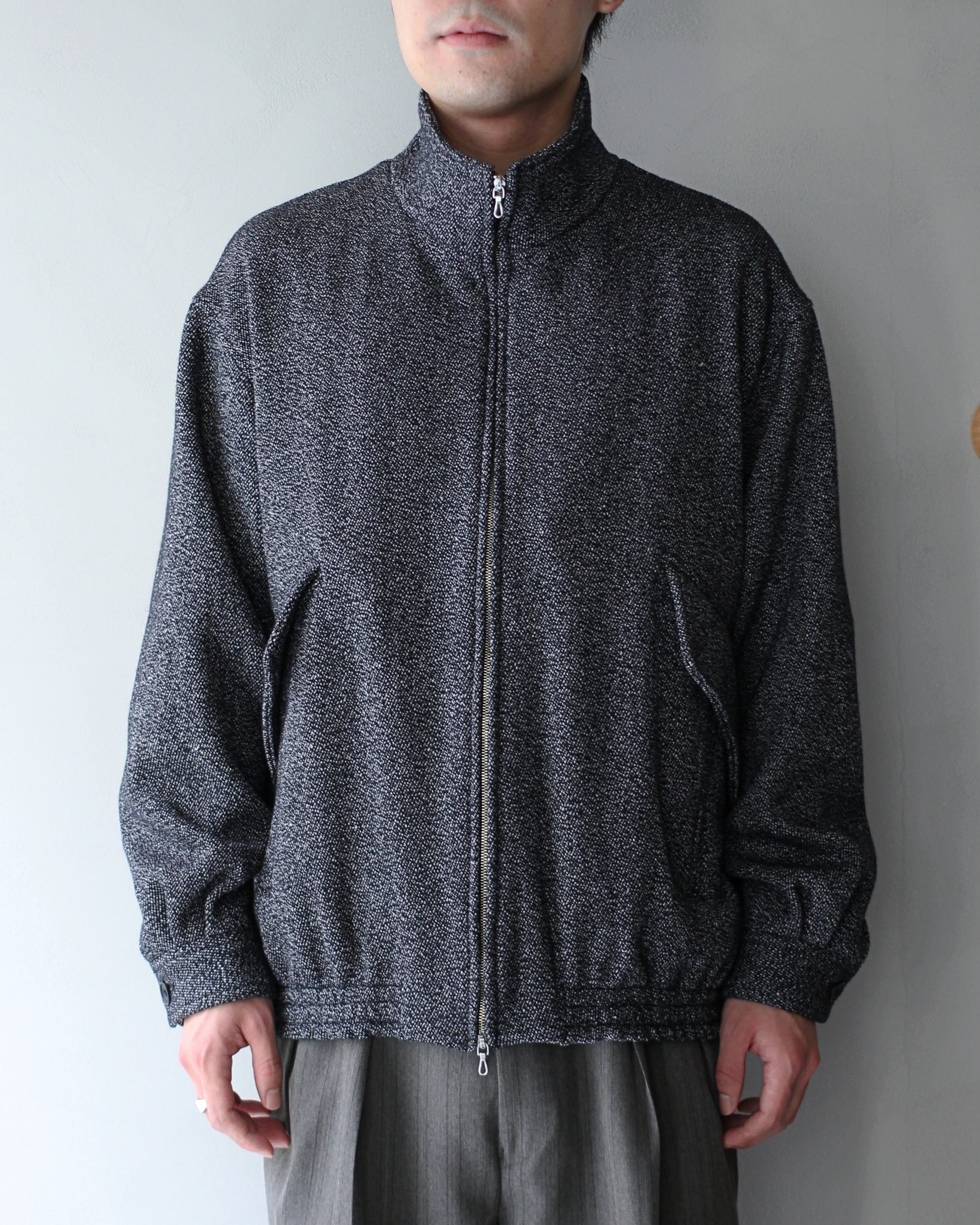 ULTERIOR / WOOL SILK KERSEY ZIP UP JKT ”BLACK IVORY″